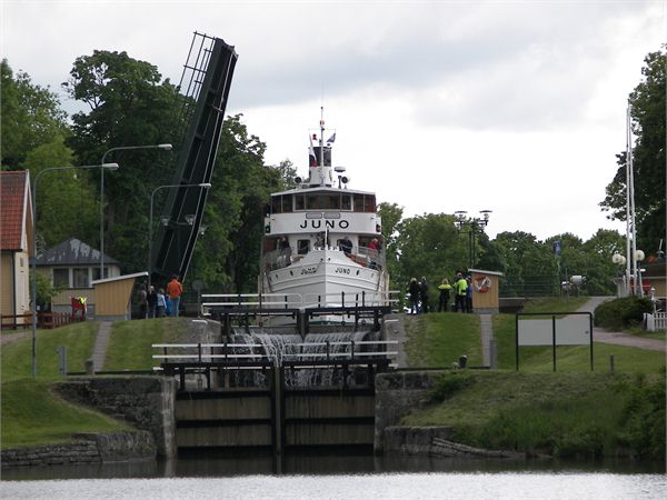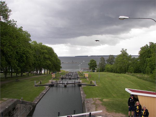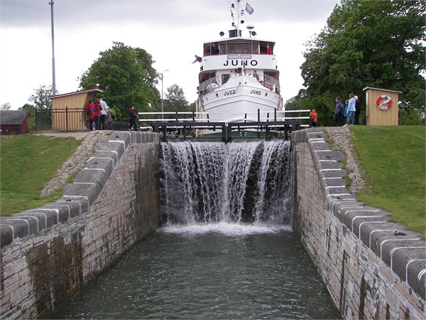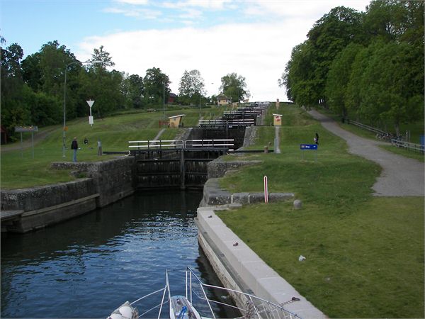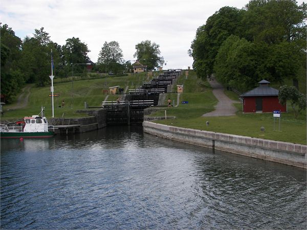 Schleusentreppe, deren Fotos den Götakanal symbolisieren. Das Wetter von