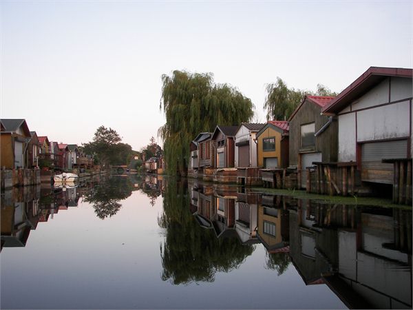ging es mitten durch die Stadt an vielen Bootshäusern vorbei und dann wieder in
